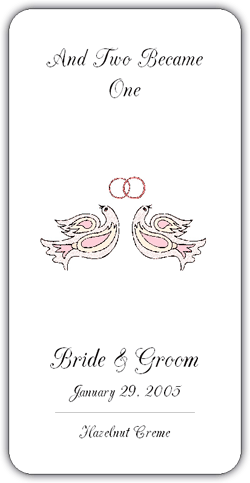 Label customized with names of bride and groom and date of wedding.